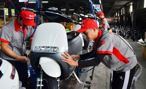 Dây chuyền lắp ráp xe máy điện của Công ty TNHH Thương mại Tấn Thành, khu công nghiệp Phúc Khánh.
