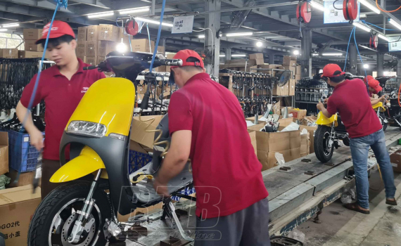 Dây chuyền sản xuất, lắp ráp xe máy điện của Công ty TNHH Thương mại Tấn Thành, khu công nghiệp Phúc Khánh, thành phố Thái Bình.