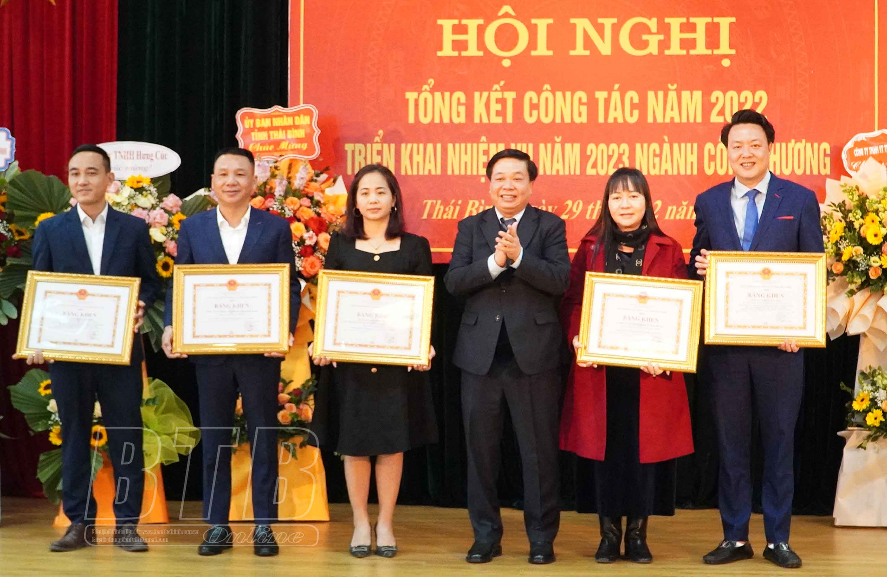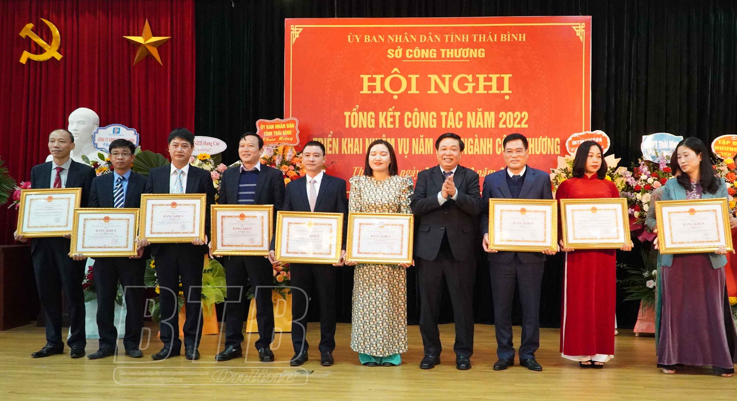 Ban tổ chức hội nghị đã trao cờ thi đua và bằng khen của UBND tỉnh cho 10 tập thể và 6 cá nhân có thành tích xuất sắc tiêu biểu năm 2022. Công bố quyết định công nhận sản phẩm công nghiệp nông thôn tiêu biểu cấp tỉnh năm 2022 cho 25 sản phẩm của 16 doanh nghiệp trên địa bàn tỉnh. Sở Công Thương cũng phát động phong trào thi đua năm 2023 tới cán bộ, công chức, viên chức và doanh nghiệp trong toàn ngành.