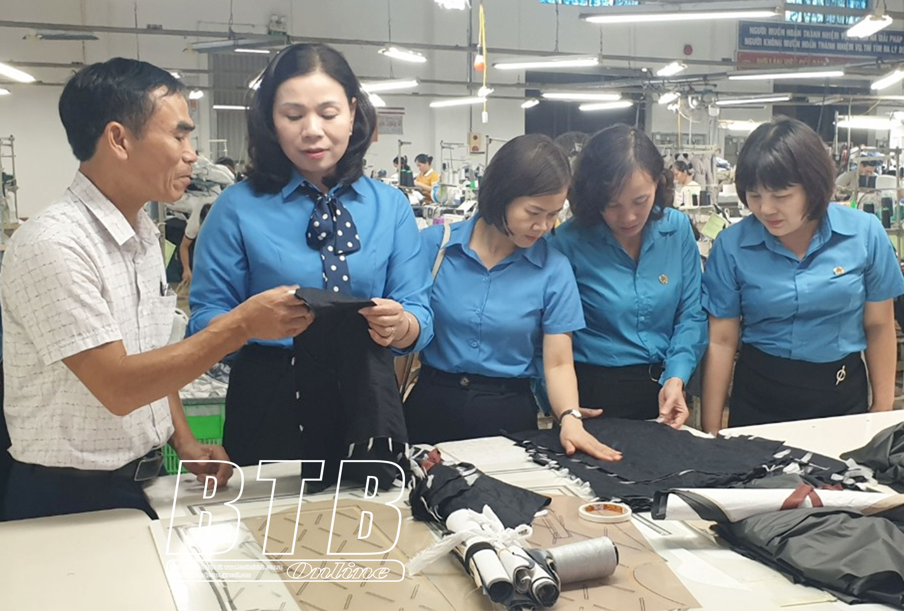 Công đoàn các cấp thăm dây chuyên sản xuất kinh doanh tại Công ty Cổ phần Đầu tư thương mại Phú Khang, thị trấn An Bài (Quỳnh Phụ).