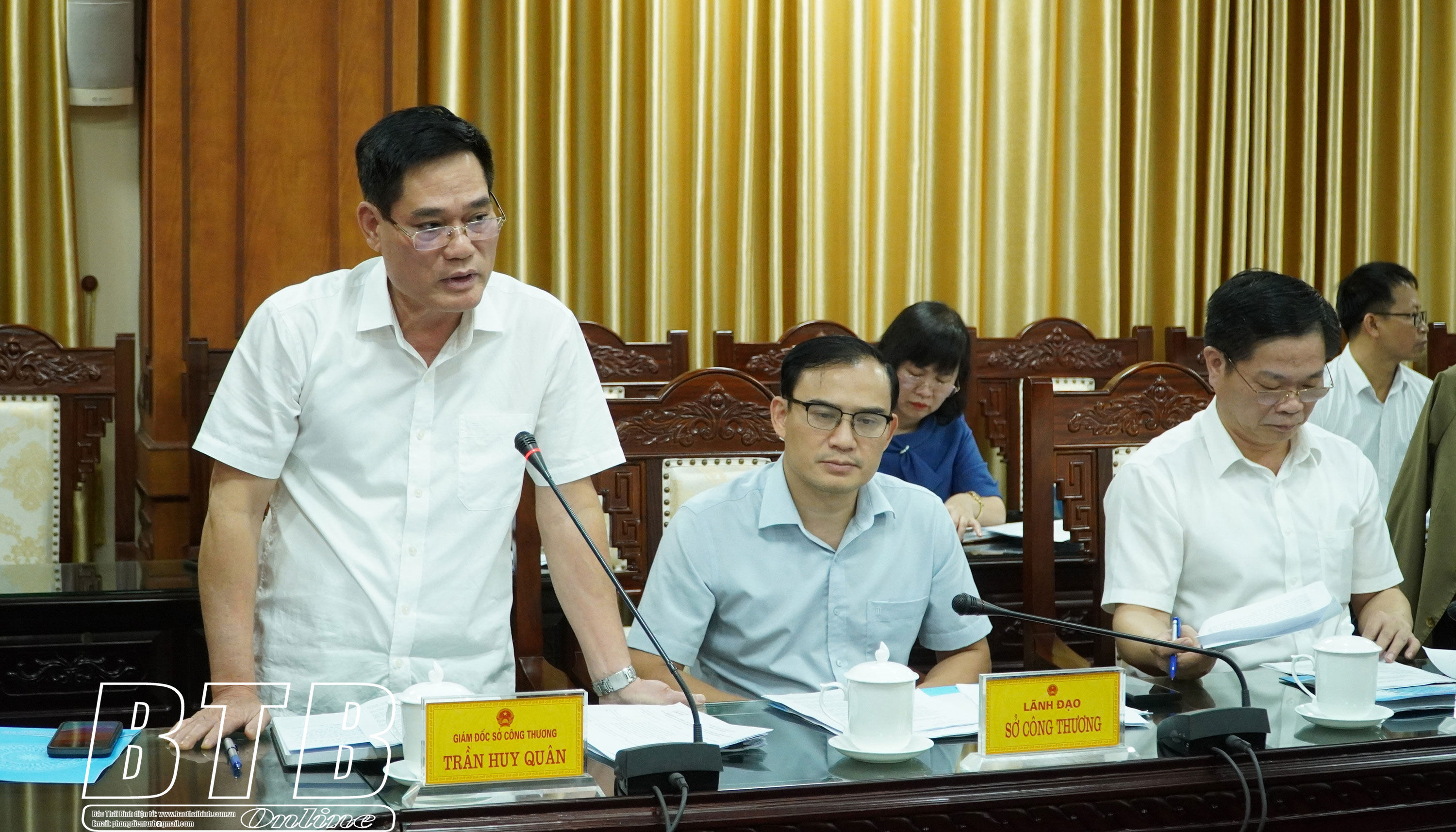 Lãnh đạo Sở Công Thương báo cáo tại cuộc họp.
