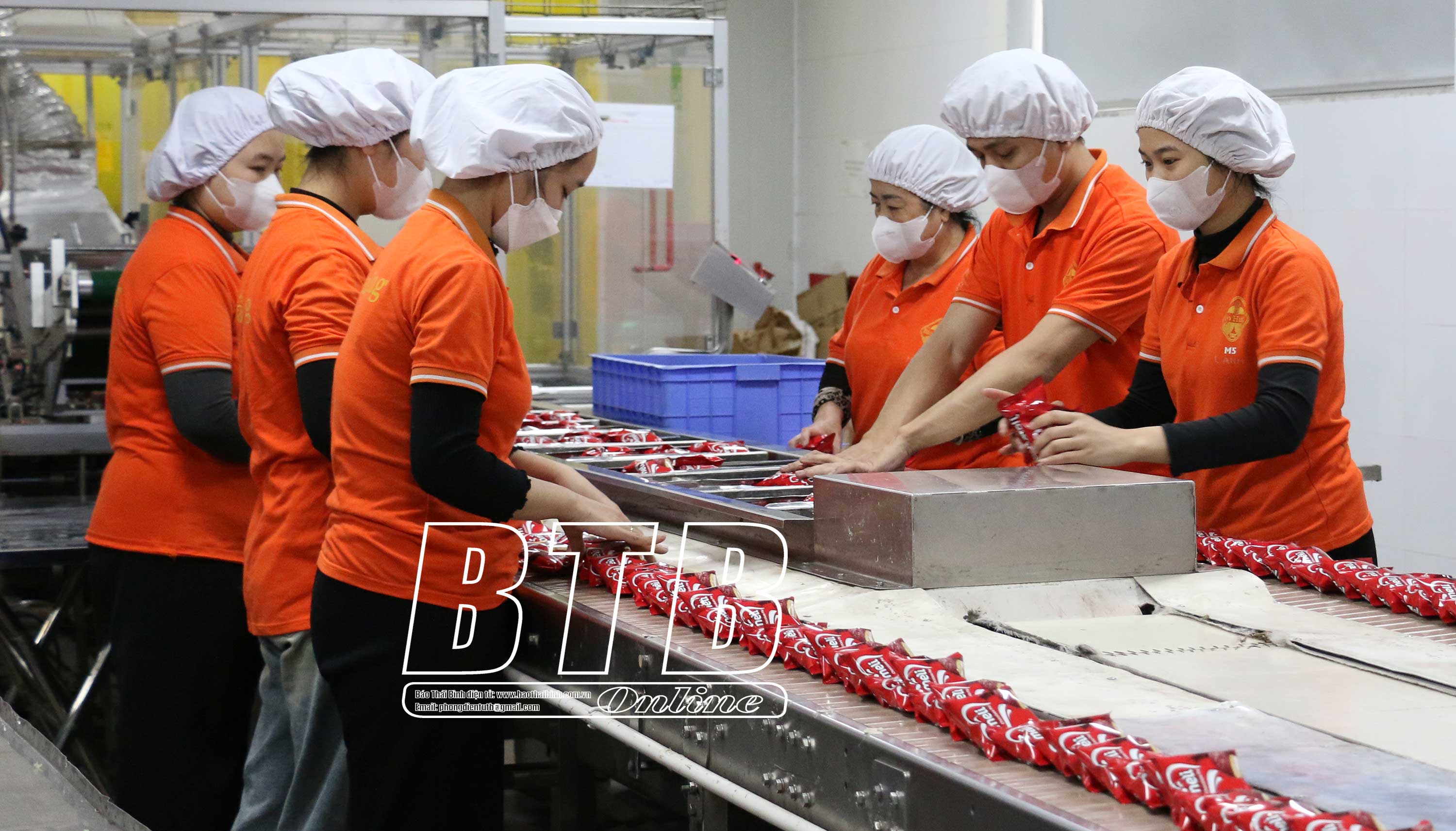 Để bảo đảm tiến độ các đơn hàng của năm 2025, hiện 12 chuyền sản xuất bánh kẹo của Công ty Cổ phần Quốc tế Bảo Hưng (cụm công nghiệp Tân Minh) đều hoạt động 2 ca liên tục. B