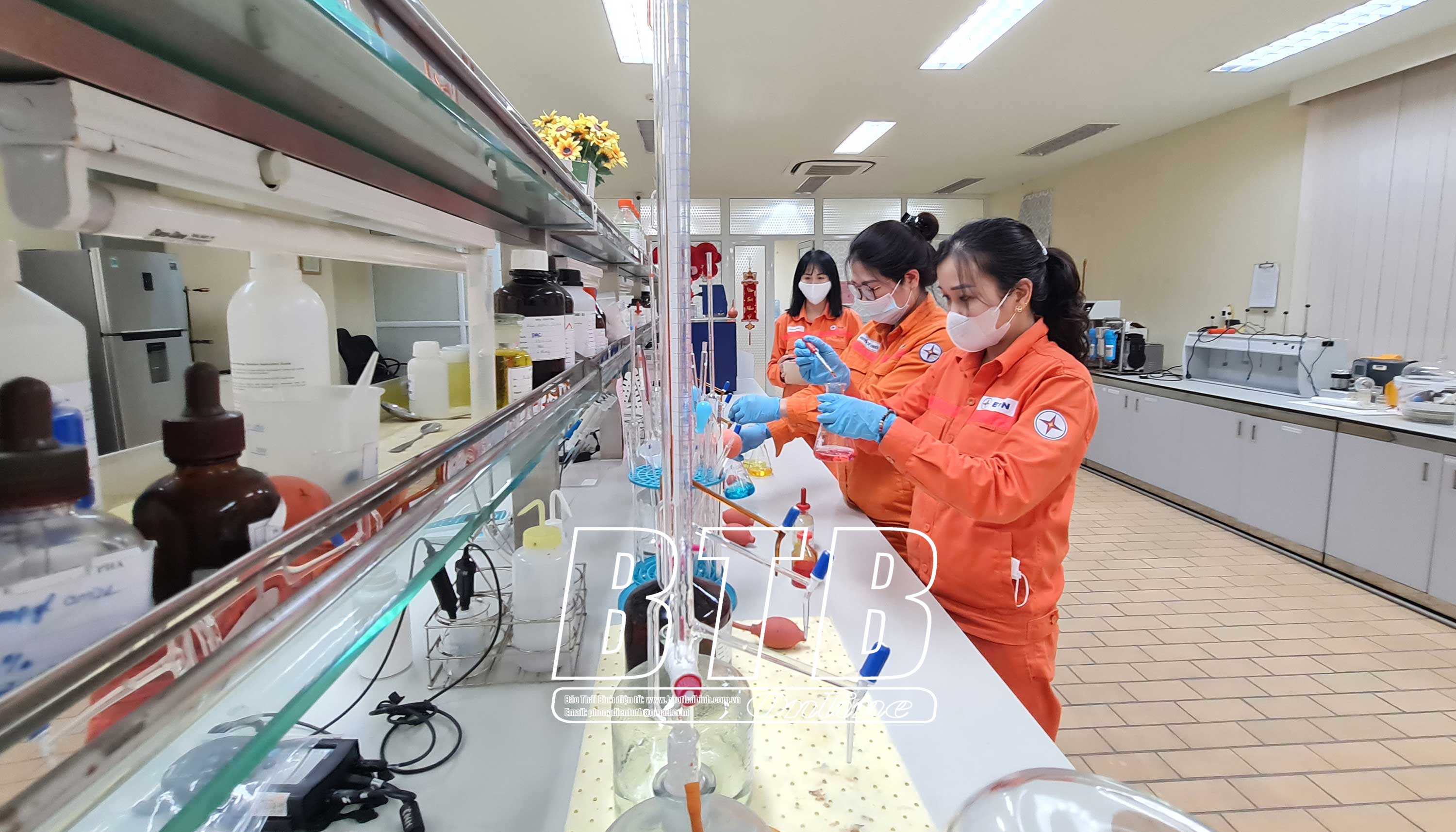 Các đoàn viên, thanh niên làm việc tại phân xưởng hóa, Công ty Nhiệt điện Thái Bình.