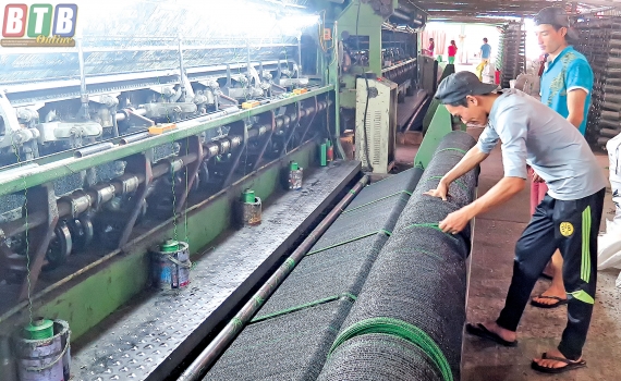 Sản phẩm lưới nilon của xã Tân Lễ chủ yếu phục vụ che mưa, che nắng cho cây trồng, nuôi trồng thủy sản…