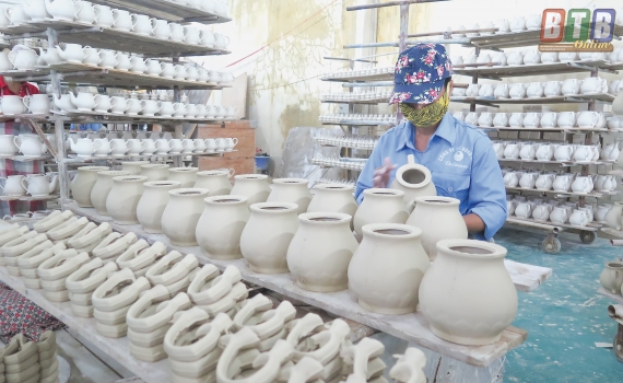 Công đoạn chỉnh sửa, tô vẽ, hoàn thiện sản phẩm mộc sứ dân dụng, mỹ nghệ.