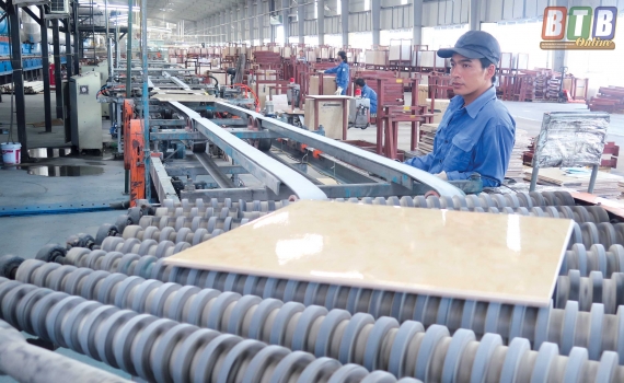 Dây chuyền sản xuất của nhà máy gạch men Mikado.