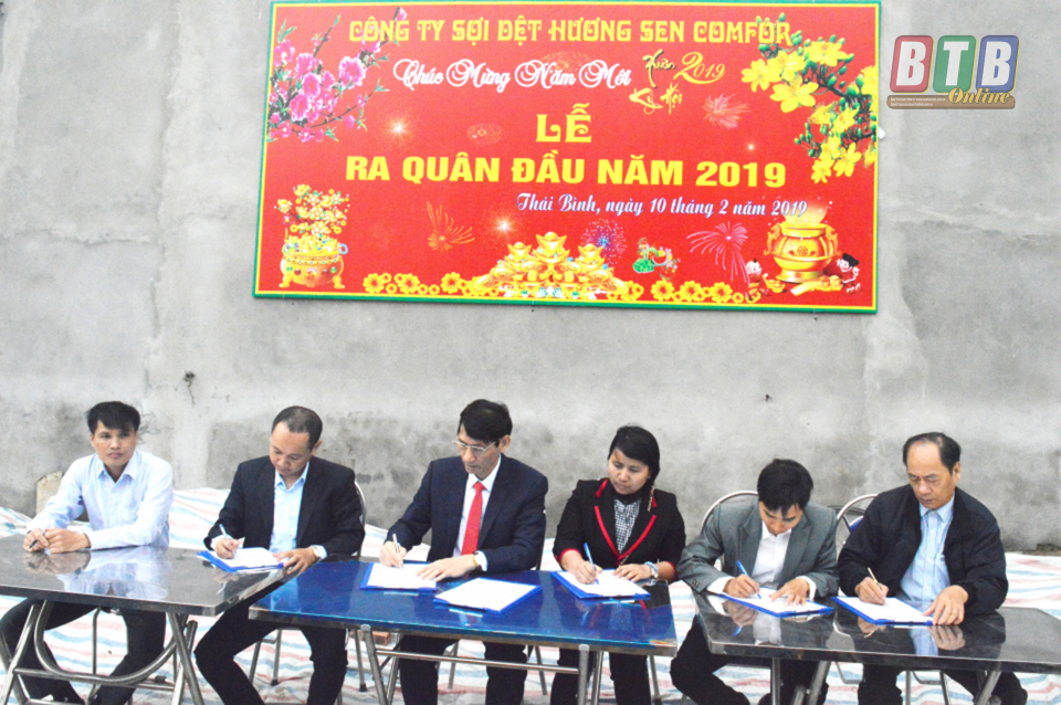 Tại lễ ra quân, tập thể cán bộ, công nhân viên, người lao động Công ty TNHH Sợi dệt Hương Sen Comfor ký giao ước thi đua, thể hiện quyết tâm thi đua lao động sản xuất ngay từ những ngày đầu, tháng đầu hoàn thành lắp đặt thiết bị, đưa nhà máy đi vào hoạt động vào tháng 5/2019.