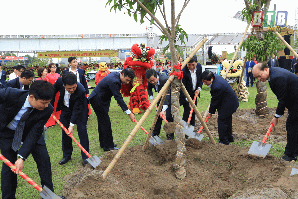 Ngay sau lễ phát động, các đồng chí lãnh đạo tỉnh đã trồng cây lưu niệm trong khuôn viên Nhà máy MXP 8 của Công ty Cổ phần Sản xuất hàng thể thao MXP.