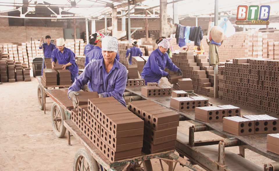 Sản xuất gạch tuynel tại Công ty Cổ phần Vật liệu xây dựng Đống Năm.