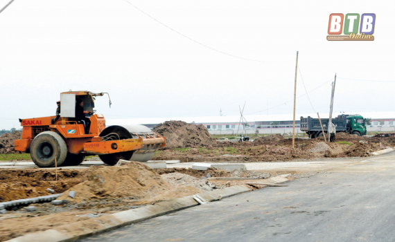 Nhà đầu tư hạ tầng đang huy động nhân lực, máy móc gấp rút hoàn thiện hạ tầng cụm công nghiệp Đô Lương.
