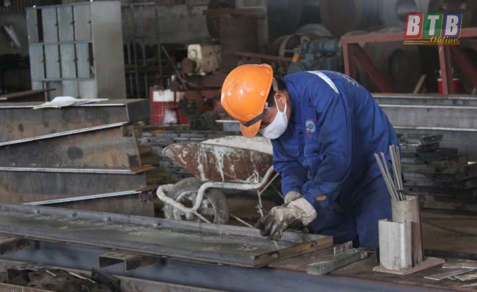 Hoạt động sản xuất tại Công ty TNHH thép Hoàng Đào, xã Đông Hợp (Đông Hưng).