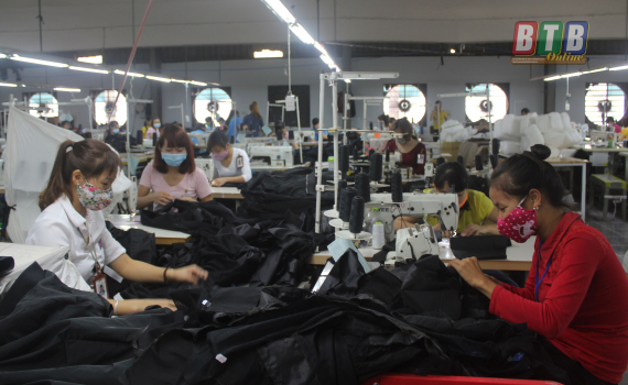 Công nhân Công ty TNHH May Bình Minh – ATC, Cụm Công nghiệp Đông La (Đông Hưng) thi đua lao động sản xuất.