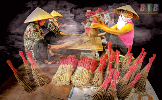 Nhiều hộ gia đình ở làng Lai Triều, xã Thụy Dương (Dương Phúc), huyện Thái Thụy vẫn duy trì nghề làm hương truyền thống.