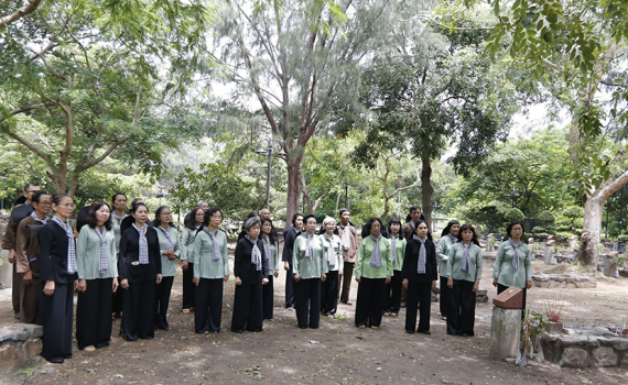 CLB Truyền thống Thành Đoàn TP.Hồ Chí Minh - trong đó có nhiều người là nữ tù chính trị - viếng Nghĩa trang Hàng Dương (tháng 7-2022). Ảnh VĂN PHONG