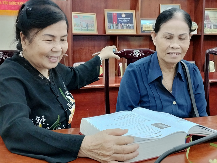 Nữ cựu tù Côn Đảo Võ Thị Thanh Thủy và Nguyễn Thị Hoa tìm địa chỉ cựu tù Côn Đảo qua danh sách các cựu tù chính trị bị địch bắt tại Đồng Nai.