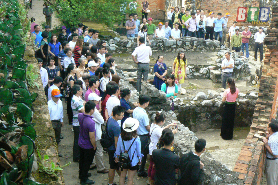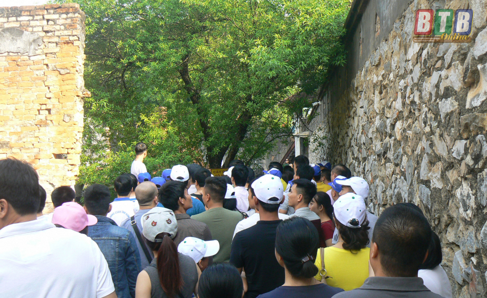 Du khách tham quan dấu tích xà lim tam giác chéo - nhà tù Sơn La. Ảnh: Thanh Thưởng