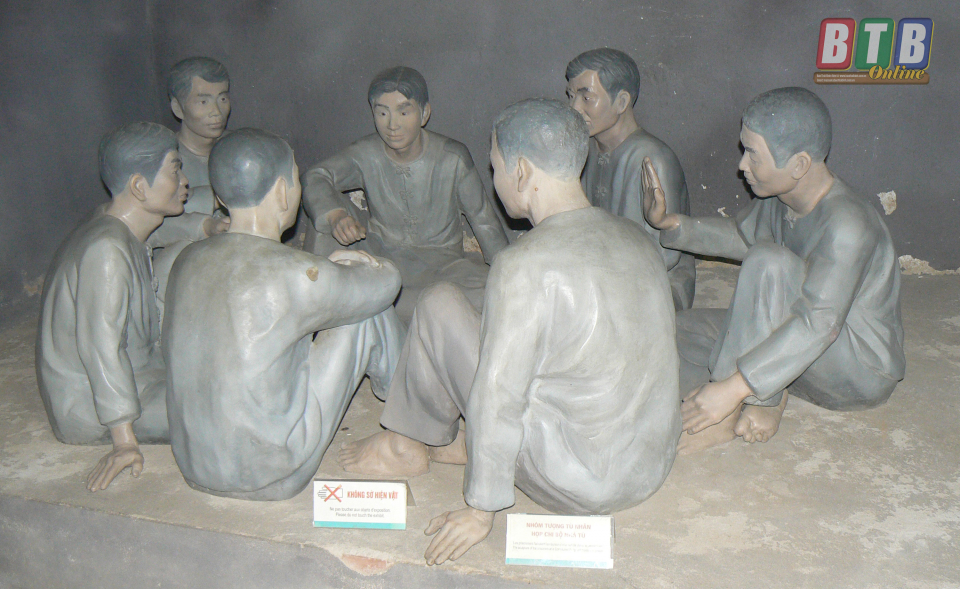 Nhóm tượng tù nhân họp chi bộ nhà tù dưới hầm sâu. Ảnh: Thanh Thưởng