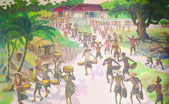 Tranh minh họa cảnh phá kho thóc của Nhật cứu đói cho dân. Nguồn internet