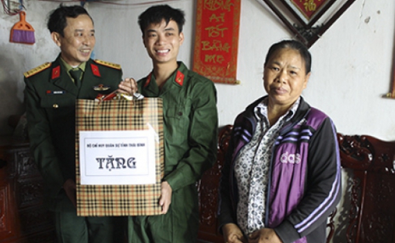Sáng ngày 8/2, đoàn công tác của Bộ Chỉ huy Quân sự (CHQS) tỉnh do đại tá Hoàng Chí Long, Chính ủy Bộ CHQS tỉnh đã đến thăm, tặng quà tân binh có hoàn cảnh khó khăn nhập ngũ năm 2017 trên địa bàn huyện Vũ Thư.