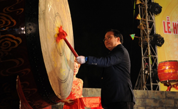 Đồng chí Hoàng Trung Hải, Ủy viên Bộ Chính trị, Bí thư Thành ủy Hà Nội đánh trống khai hội.