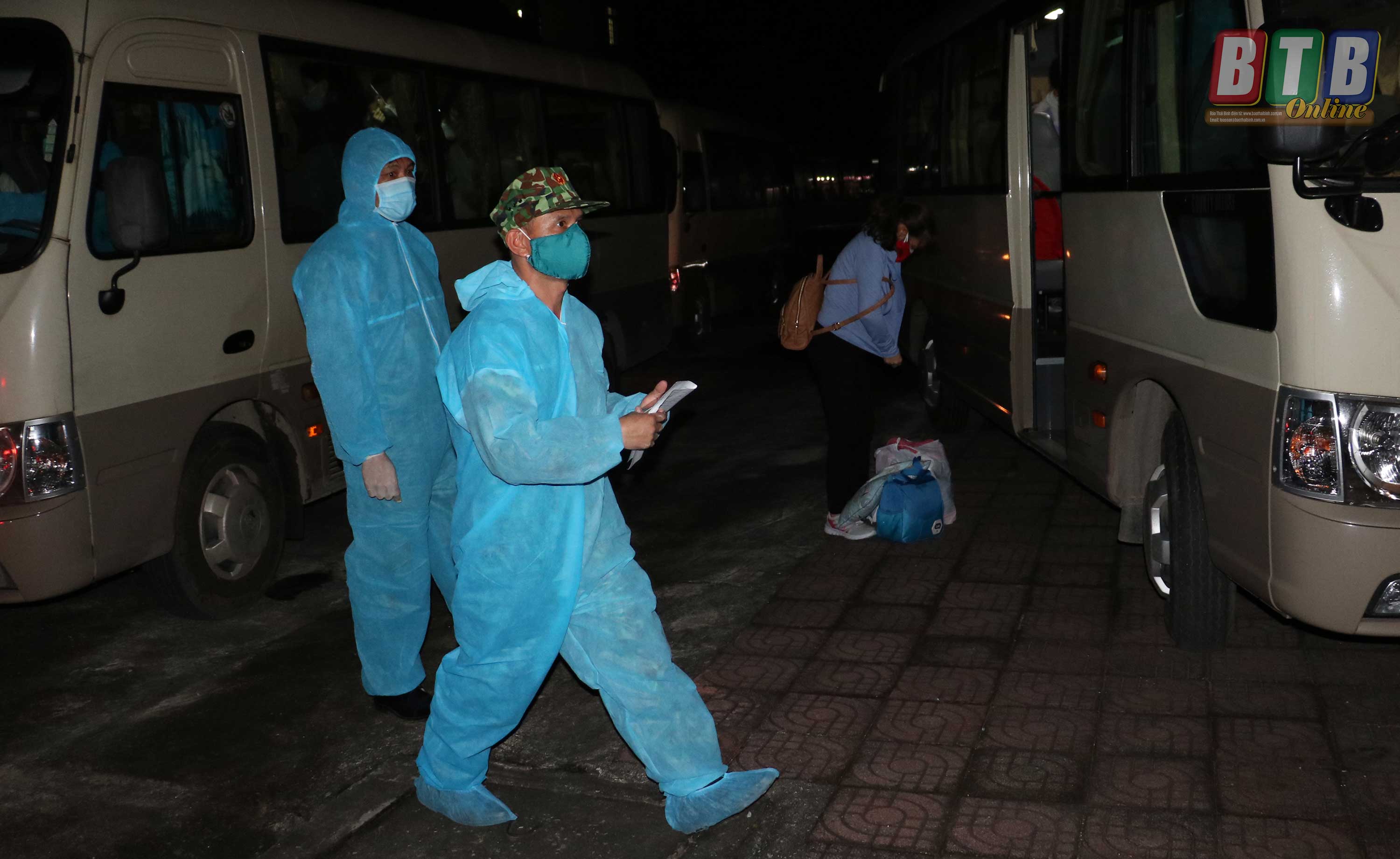 Những chuyến xe chở người từ sân bay quốc tế Vân Đồn về khu cách ly tập trung của tỉnh ngay trong đêm.