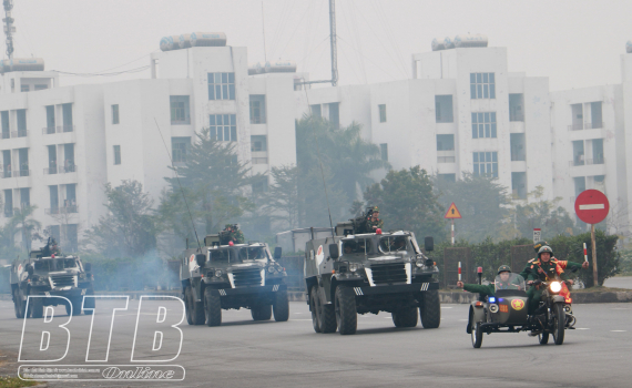 Đại đội Thiết giáp 22 Bộ CHQS tỉnh tham gia huấn luyện các phương án phối hợp bảo đảm an ninh trật tự dịp Đại hội lần thứ XIII của Đảng.
