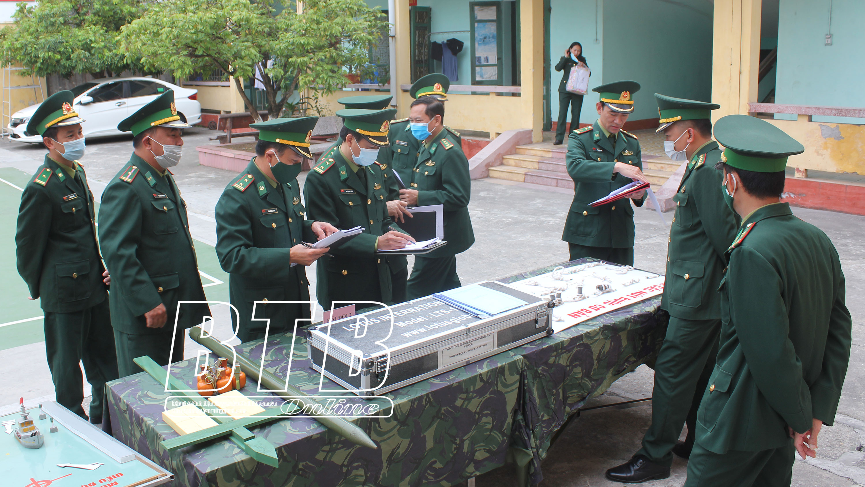 Cán bộ Đồn Biên phòng Cửa Lân thuyết trình mô hình cải tiến của đơn vị.