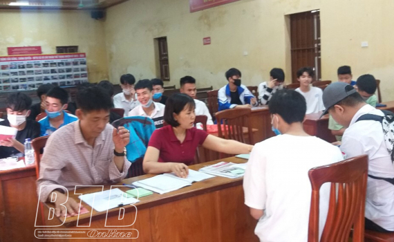 Các thanh niên được gọi đã đến làm thủ tục kê khai đăng ký và viết bản cam kết. Hội đồng nghĩa vụ quân sự các xã, thị trấn tiến hành kiểm tra lý lịch bản thân, hoàn cảnh gia đình, trình độ văn hóa, chính trị, sức khỏe sơ bộ ban đầu và cấp giấy chứng nhận đăng ký nghĩa vụ quân sự.