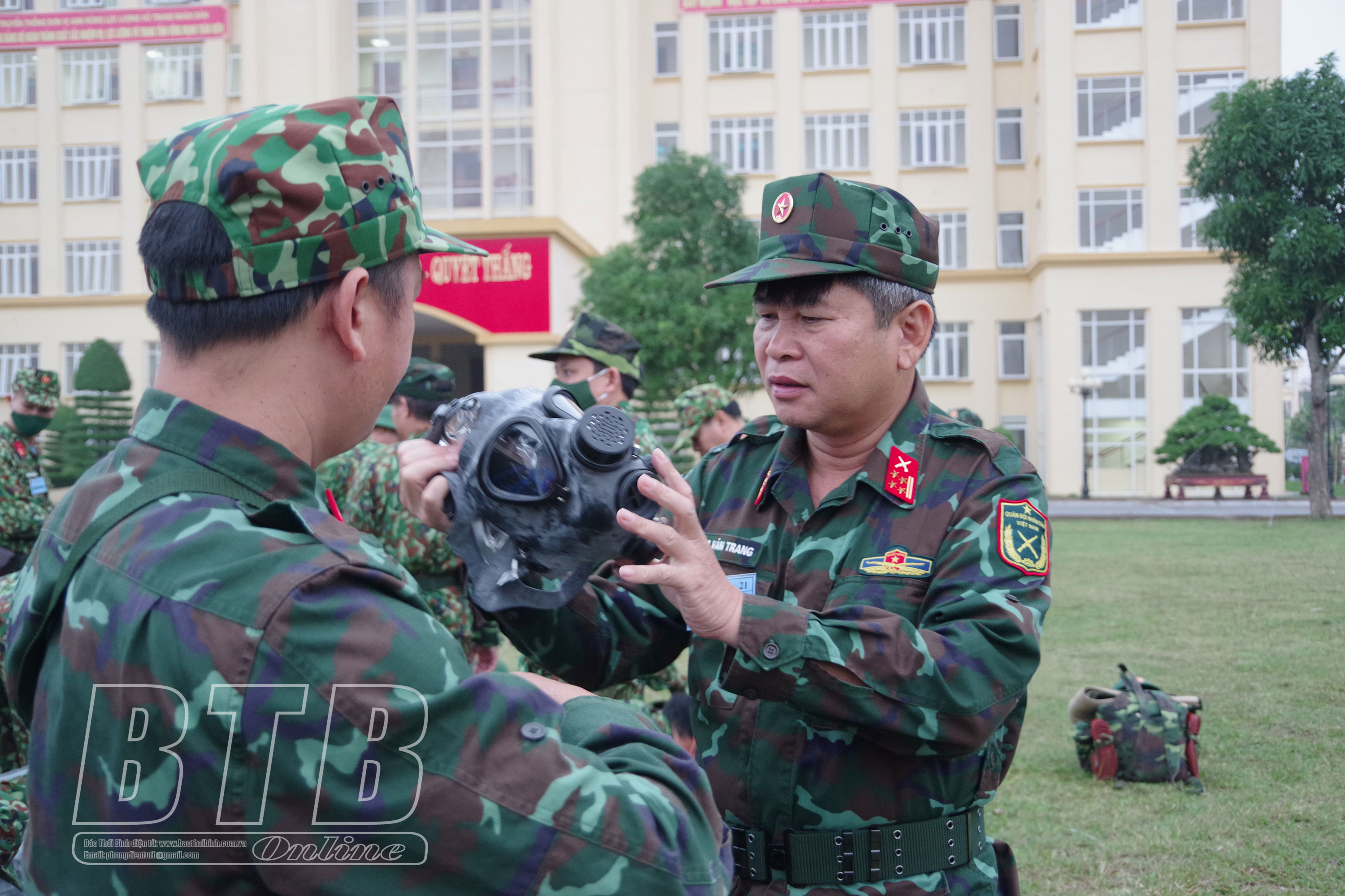 Kiểm tra mặt nạ phòng độc trước lúc cơ động về căn cứ chiến đấu.