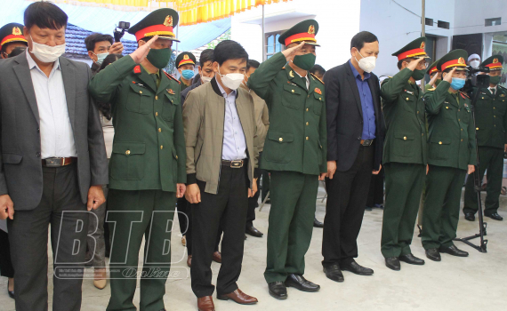 Đại diện các sở, ngành của tỉnh, Huyện ủy, HĐND, UBND huyện Vũ Thư, cấp ủy, chính quyền, nhân dân xã Hòa Bình dâng hương tưởng nhớ liệt sĩ Phạm Đình Nhạ.