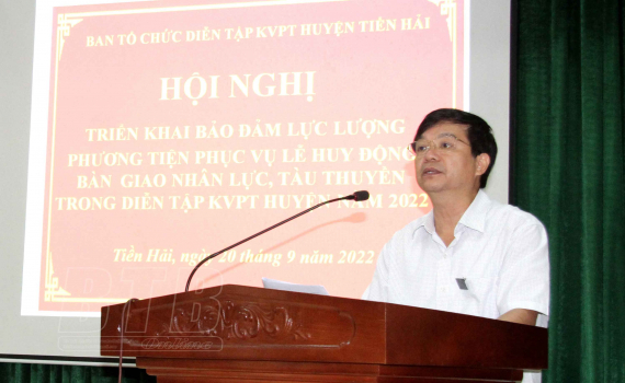 Cuộc diễn tập khu vực phòng thủ huyện Tiền Hải là một trong những nhiệm vụ chính trị rất quan trọng, vì vậy các cơ quan, đoàn thể, đơn vị cần nhận thức rõ ý nghĩa, tầm quan trọng của nhiệm vụ diễn tập, nâng cao vai trò, trách nhiệm, chủ động các phương tiện, bảo đảm cơ sở vật chất phục vụ cho công tác diễn tập đạt kết quả cao.