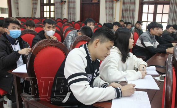 Thanh niên trúng tuyển nghĩa vụ quân sự của huyện Vũ Thư tham gia lớp bồi dưỡng nhận thức về Đảng.