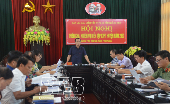 Tại hội nghị, Ban Chỉ huy Quân sự huyện Quỳnh Phụ báo cáo dự thảo kế hoạch tổ chức diễn tập và trình bày dự thảo quy trình diễn tập khu vực phòng thủ huyện. Theo đó, nội dung diễn tập tập trung vào 2 giai đoạn: giai đoạn 1 chuyển lực lượng vũ trang vào các trạng thái sẵn sàng chiến đấu, chuyển địa phương vào các trạng thái quốc phòng; giai đoạn 2 tổ chức chuẩn bị tác chiến phòng thủ. Thời gian diễn tập dự kiến vào cuối tháng 10/2023. Đến nay, công tác chuẩn bị cho diễn tập được Ban Chỉ đạo diễn tập khu vực phòng thủ huyện Quỳnh Phụ phân công nhiệm vụ cụ thể cho các thành viên, cơ quan, đơn vị và các địa phương theo kế hoạch.