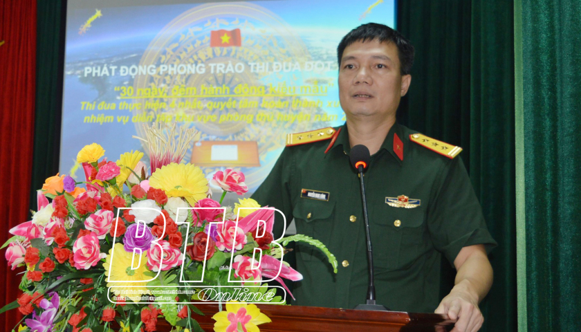 Lãnh đạo Ban CHQS huyện phát biểu tại lễ phát động.