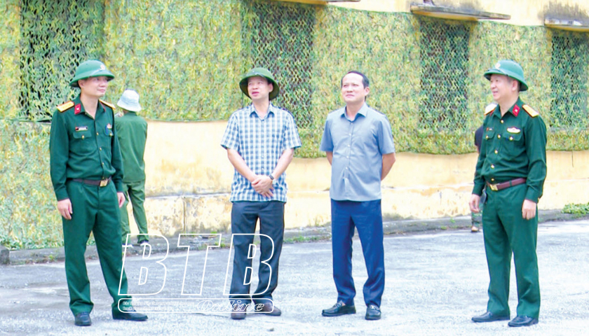 Các đồng chí lãnh đạo huyện Quỳnh Phụ kiểm tra công tác chuẩn bị diễn tập khu vực phòng thủ huyện năm 2023.