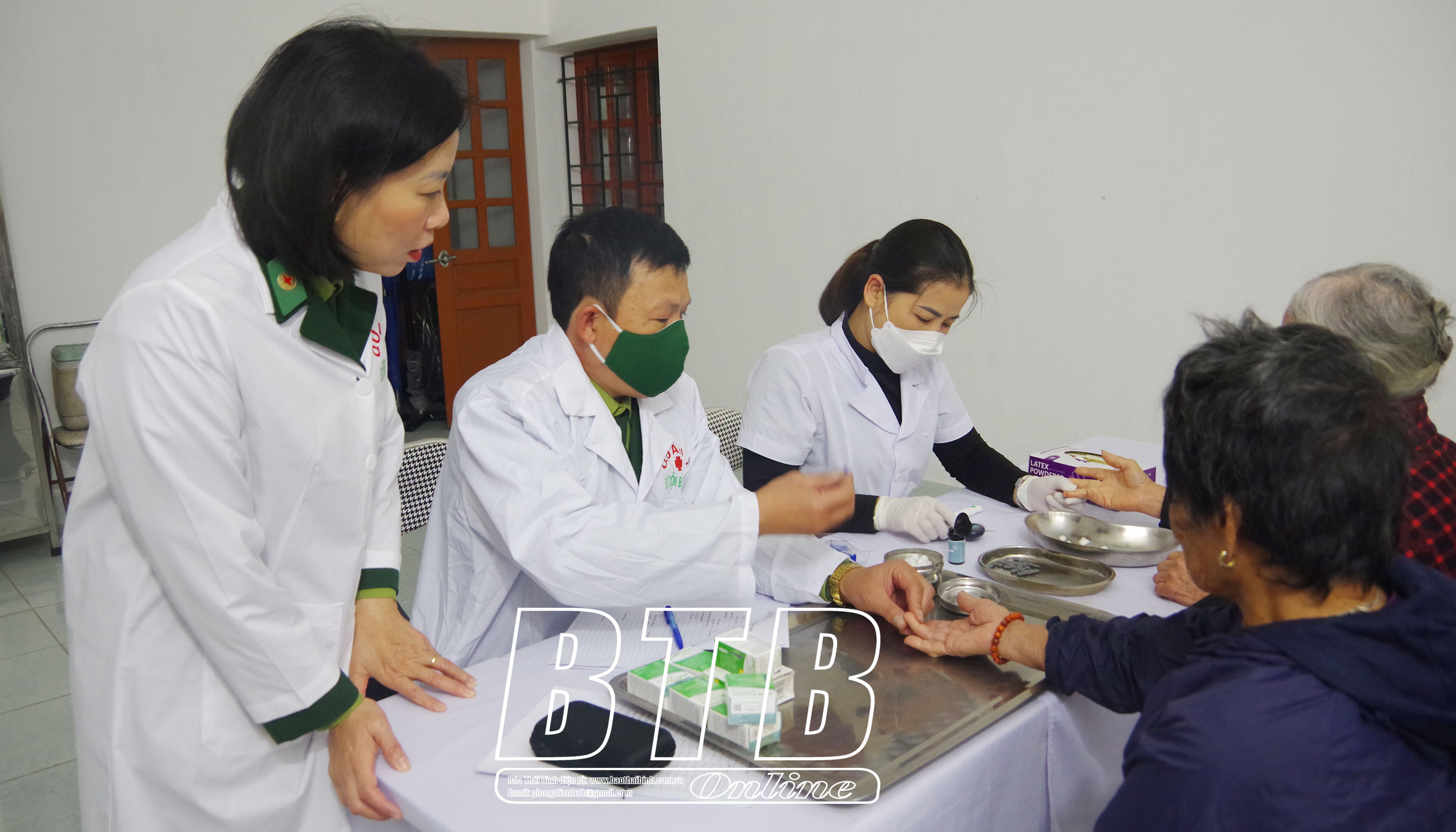 Quân y Đồn Biên phòng Cửa Lân và cán bộ Trung tâm Y tế huyện Tiền Hải tổ chức thăm khám, cấp thuốc miễn phí cho nhân dân.