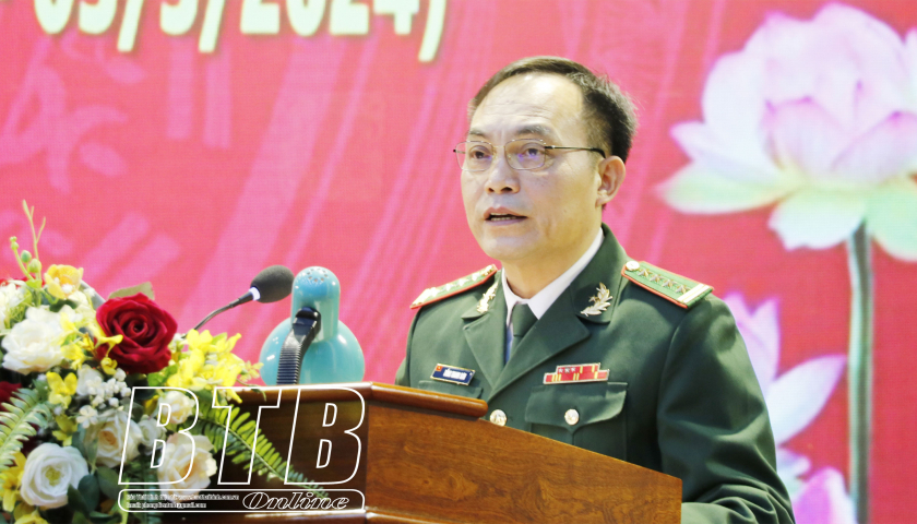 Đại tá Tống Thanh Sơn, Chỉ huy trưởng Bộ Chỉ huy BĐBP tỉnh phát biểu tại buổi gặp mặt.