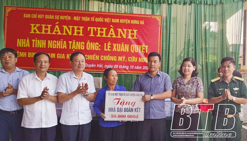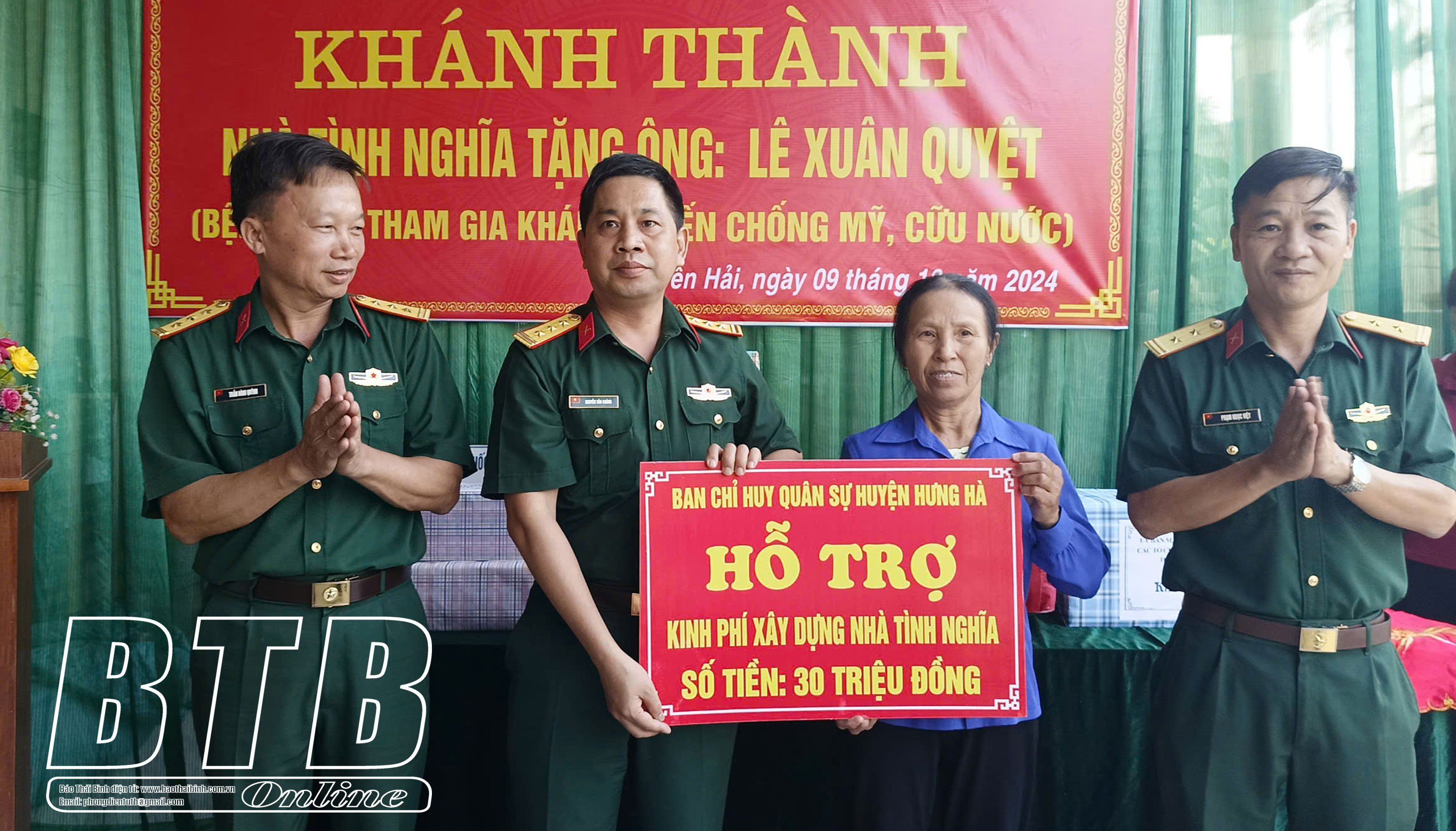 Trước những khó khăn về nhà ở của gia đình ông Quyệt, UBND huyện Hưng Hà đã chỉ đạo Ban CHQS huyện phối hợp, rà soát, hỗ trợ xây dựng nhà tình nghĩa giúp gia đình ông Quyệt vượt qua khó khăn sớm ổn định cuộc sống.