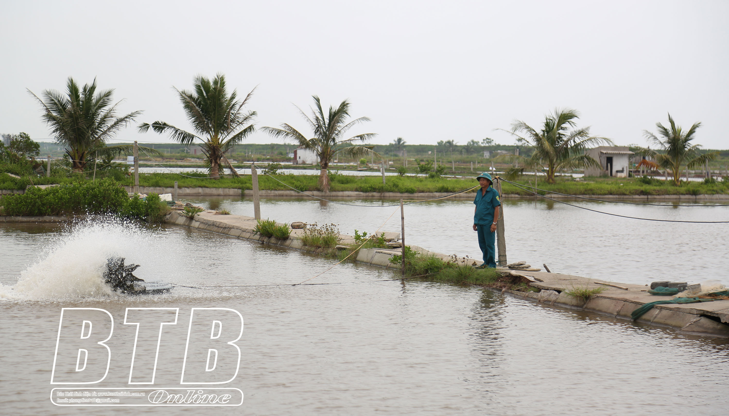 Mô hình chăn nuôi cá song, cá vược, tôm thẻ, tôm sú của dân quân Bùi Thế Hùng, thôn Quang Lang Đông, xã Thụy Hải (Thái Thụy) được đầu tư bài bản với hệ thống máy bơm, máy sục khí, camera an ninh.