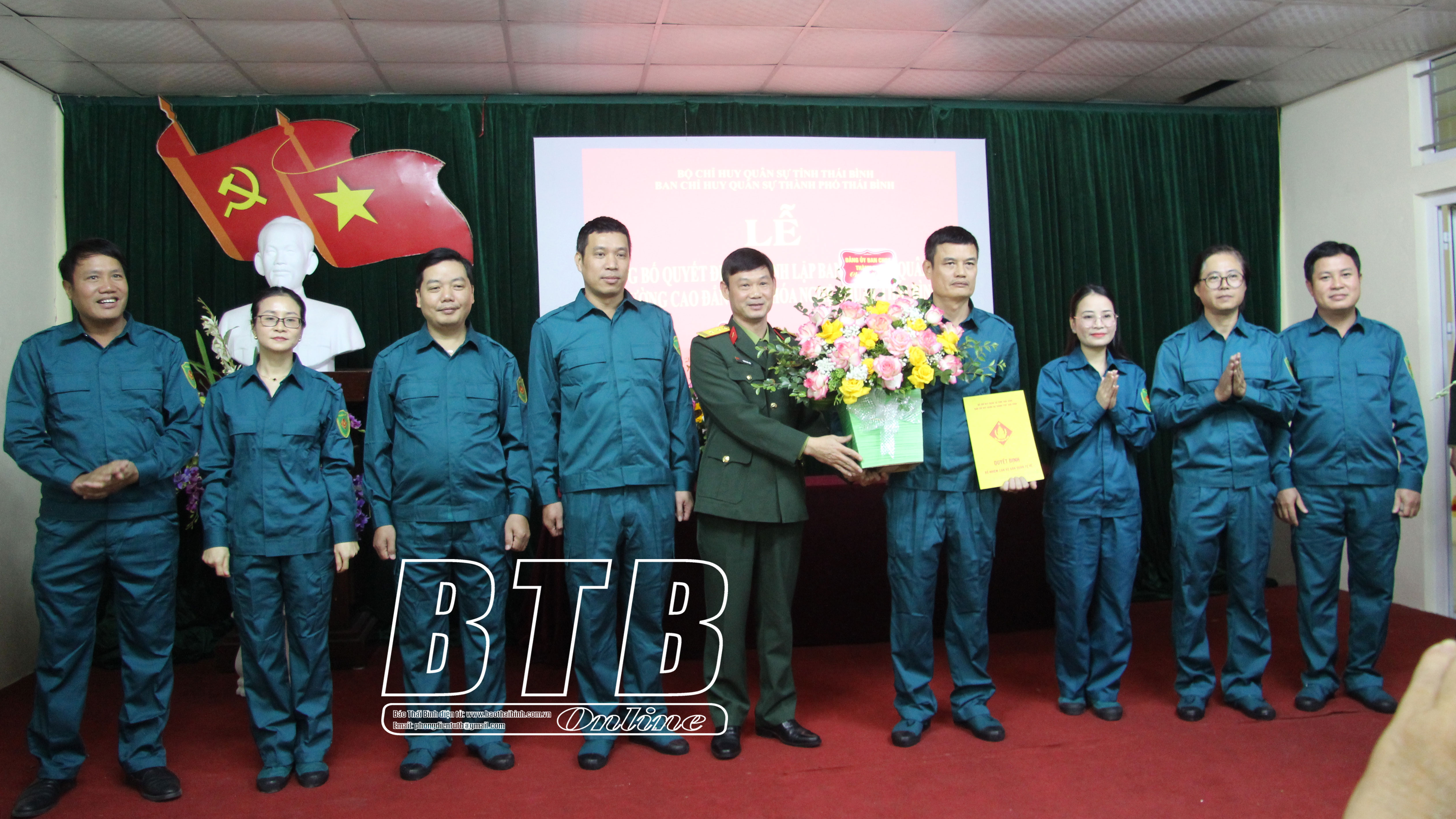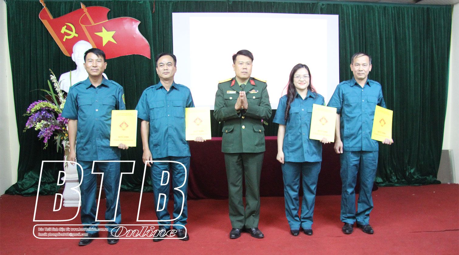 Đại diện Ban Chỉ huy Quân sự thành phố Thái Bình trao quyết định thành lập Tiểu đội tự vệ Trường Cao đẳng Văn hóa Nghệ thuật tỉnh.