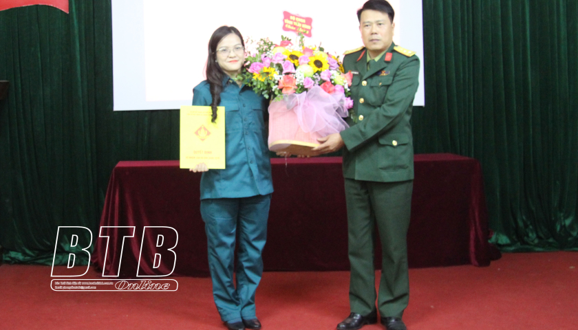 Lãnh đạo Bộ Chỉ huy Quân sự tỉnh trao quyết định thành lập Ban Chỉ huy Quân sự Trường Cao đẳng Văn hóa Nghệ thuật tỉnh.