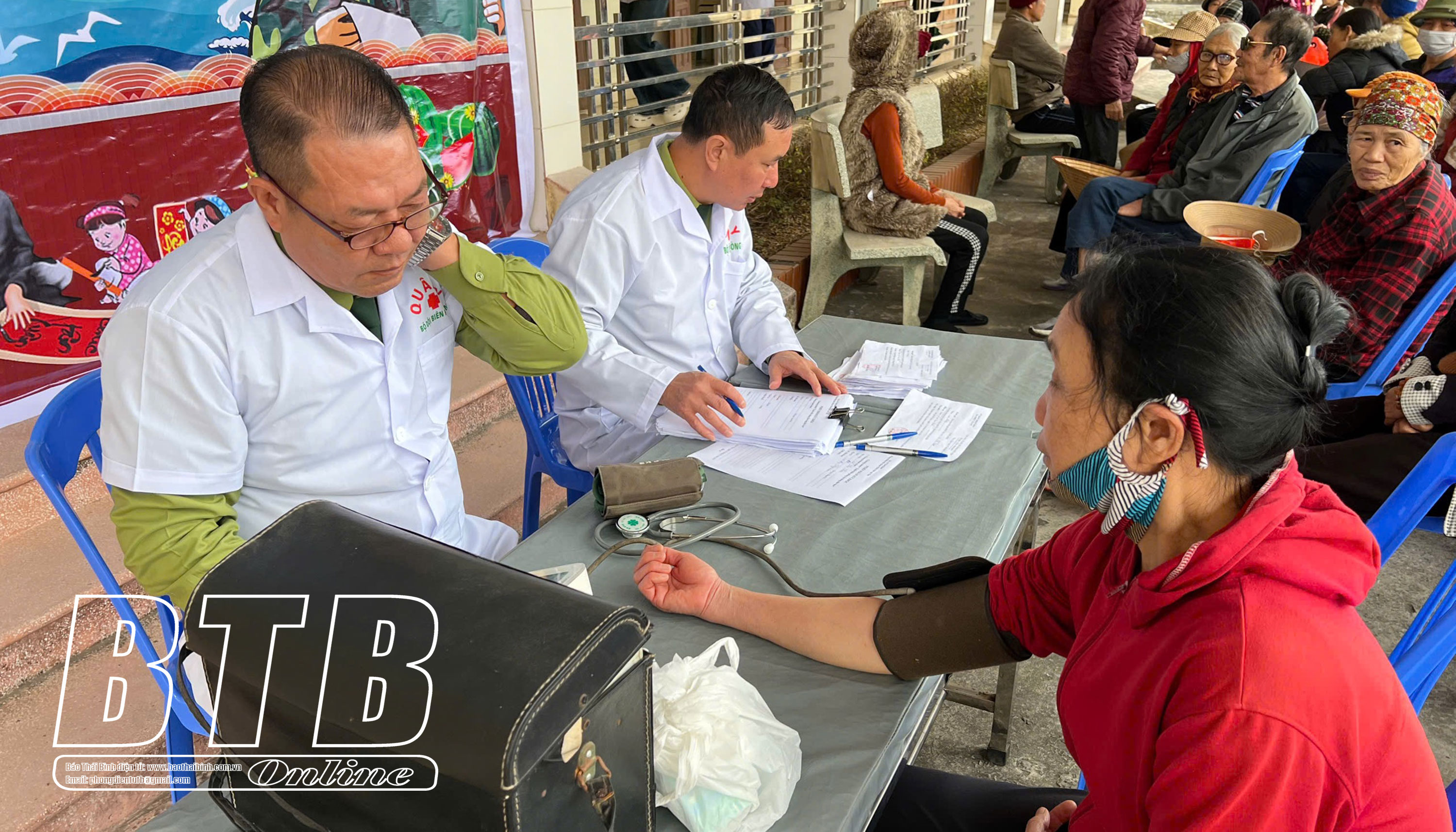 Đại diện lãnh đạo Bộ Chỉ huy Bộ đội Biên phòng tỉnh trao quà cho các cháu học sinh tiểu học có hoàn cảnh khó khăn. Khám, cấp thuốc miễn phí cho người dân xã Thuỵ Xuân.