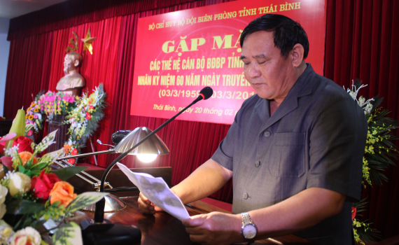 Tại buổi gặp mặt, Bộ chỉ huy BĐBP tỉnh đã đọc diễn văn ôn lại truyền thống 60 năm qua của lực lượng Công an nhân dân vũ trang - Bộ đội Biên phòng ngày nay, qua đó khẳng định ngay từ ngày đầu mới thành lập các thế hệ cán bộ, chiến sỹ BĐBP đã không ngừng học tập rèn luyện vượt qua khó khăn, thử thách góp phần thắng lợi của đất nước, dân tộc. Trong số đó có bao người con của Thái Bình đã anh dũng hy sinh và để lại một phần xương máu trong các cuộc chiến tranh có nhiều người được phong tặng là Anh hùng liệt sỹ như: Anh hùng Hoàng Kim Long, Anh hùng Nguyễn Văn Thử (Tiền Hải)...