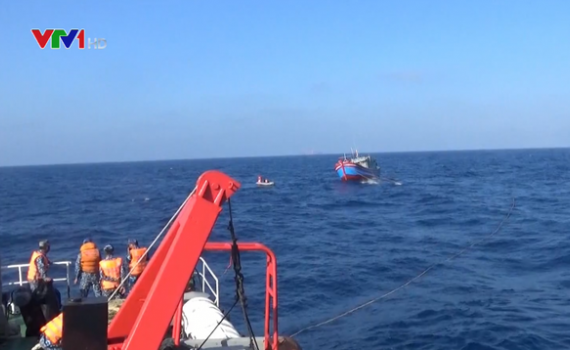 Lai dắt tàu cá và 6 ngư dân gặp nạn trên vùng biển Hoàng Sa vào bờ