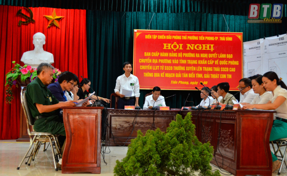 Chương trình diễn tập chiến đấu phòng thủ cụm gồm 4 phường Quang Trung, Trần Hưng Đạo, Tiền Phong và Phú Khánh mang mật danh DT- 19 với đề mục "Dưới sự lãnh đạo của Đảng ủy, HĐND, UBND phường chuyển địa phương vào các trạng thái quốc phòng; chuyển lực lượng vũ trang vào các trạng thái sẵn sàng chiến đấu, tổ chức chuẩn bị và thực hành tác chiến phòng thủ”.