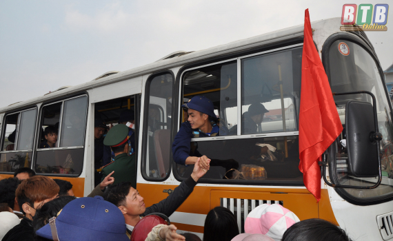 Các tân binh huyện Thái Thụy lên đường nhập ngũ năm 2019.