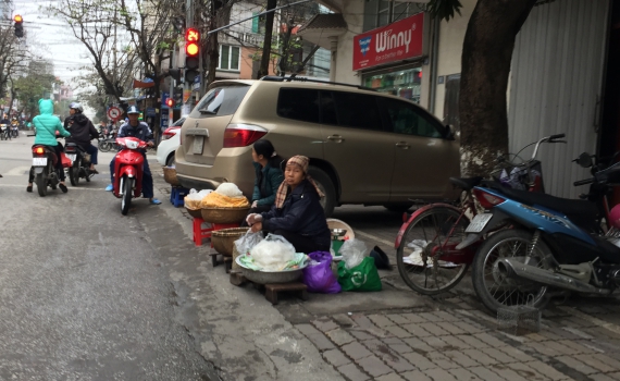 Vỉa hè bị lấn chiếm toàn bộ, còn người dân vô tư đỗ xe giữa lòng đường để mua đồ.