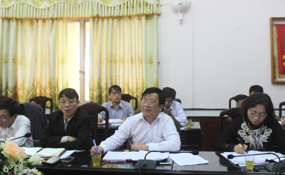 Các đại biểu tham dự buổi khảo sát tại UBND huyện Đông Hưng