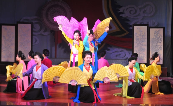 Các nghệ sĩ Nhà hát Chèo Thái Bình biểu diễn tiết mục "Thái Bình quê lúa".