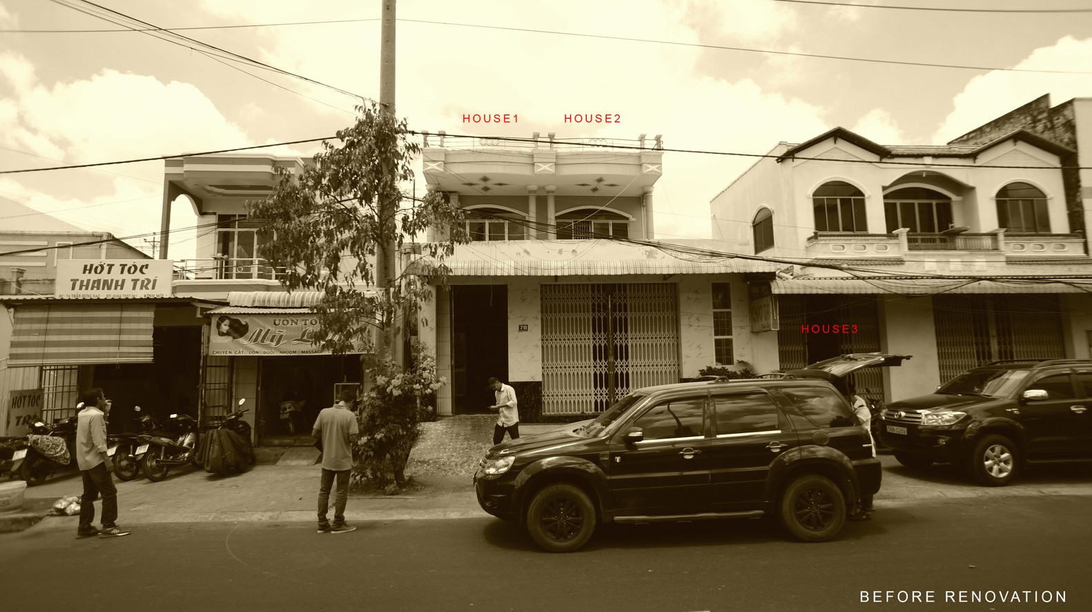 Mặt tiền của ngôi nhà trước khi cải tạo không tương đồng, chưa tạo được điểm nhấn về hình khối và màu sắc dù nằm trên mặt đường lớn, sầm uất.